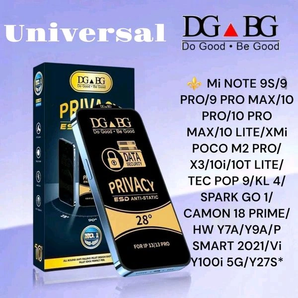 Mi Note 9s / Note 9 Pro / Note 9 Pro Max Privacy Glass DG BG Esd Anti Static